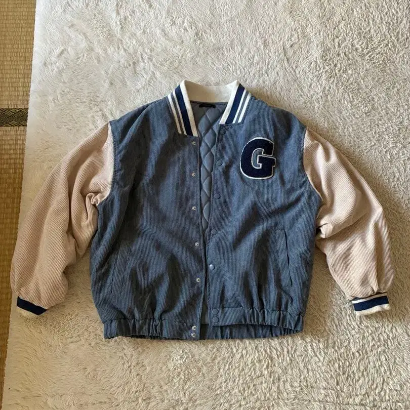코듀로이 소재의 바시티 자켓, G 자수 포함. - 색상: 그레이/베이지 - 디자인: G 자수 - 소재: 코듀로이/나일론 - 스타일: 바시티 자켓 - 소매: 리브 방문해 주셔서 감사합니다.