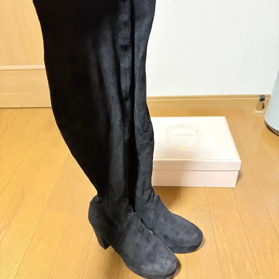 즉시 구매 가능, 당일 발송 스웨이드 소재의 블랙 니하이 부츠. - 색상: 블랙 - 소재: 스웨이드 - 디자인: 니하이 부츠 사이즈: S 힐 높이: 9cm 2회 정도 착용했지만, 신경 쓰이지 않는 분 부탁드립니다. 방문해 주셔서 감사합니다.