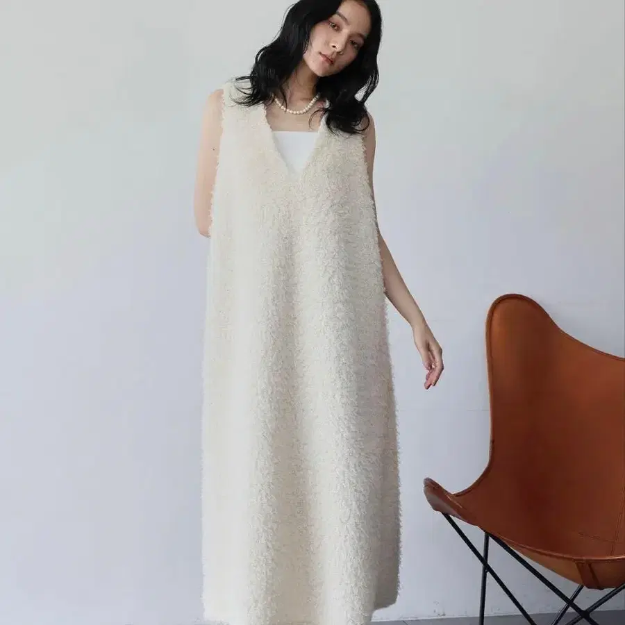 ELFRANK 아이보리 슬리브리스 니트 원피스