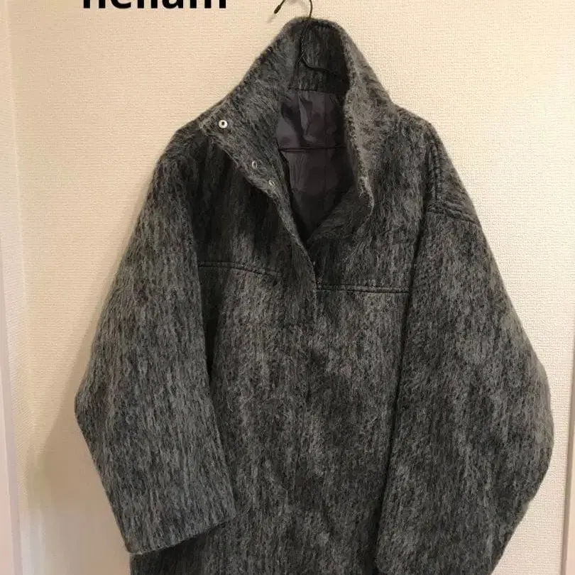 hellam 샤기 스탠드 칼라 코트 그레이