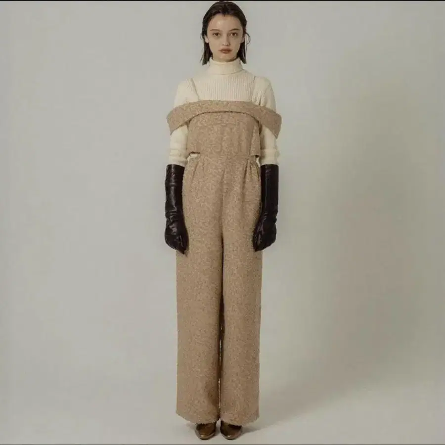 2024AW keyword 어깨를 내린 소매가 대담하게 프릴로 디자인된 올인원.
