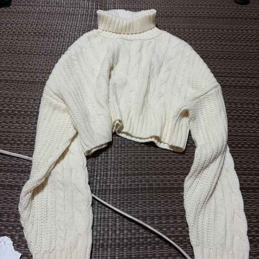 아이보리 케이블 니트 터틀넥 크롭 기장