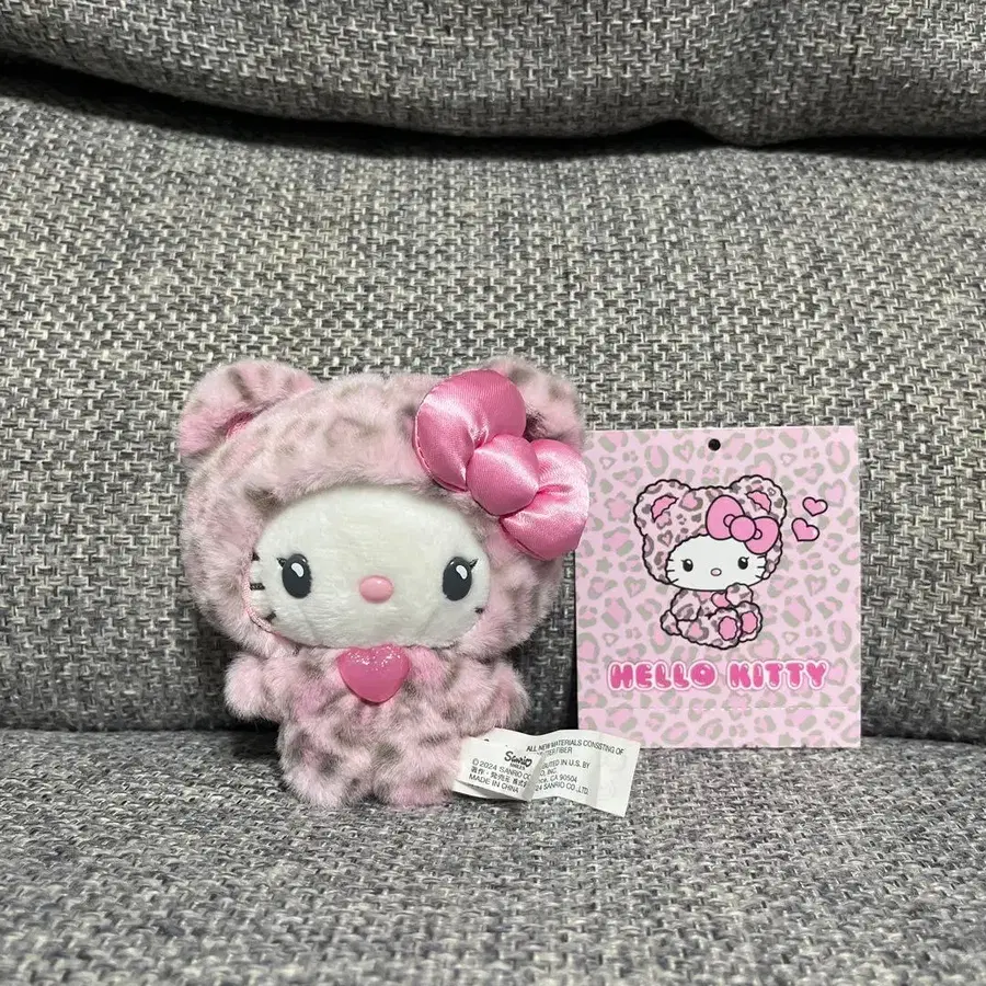 헬로키티 레오파드 무늬 키티 핑크 봉제 인형 키링 산리오
