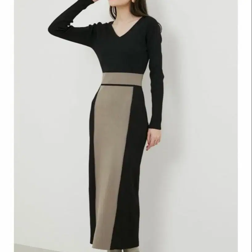 rienda 리엔다 2WAY 바이컬러 타이트 니트 원피스