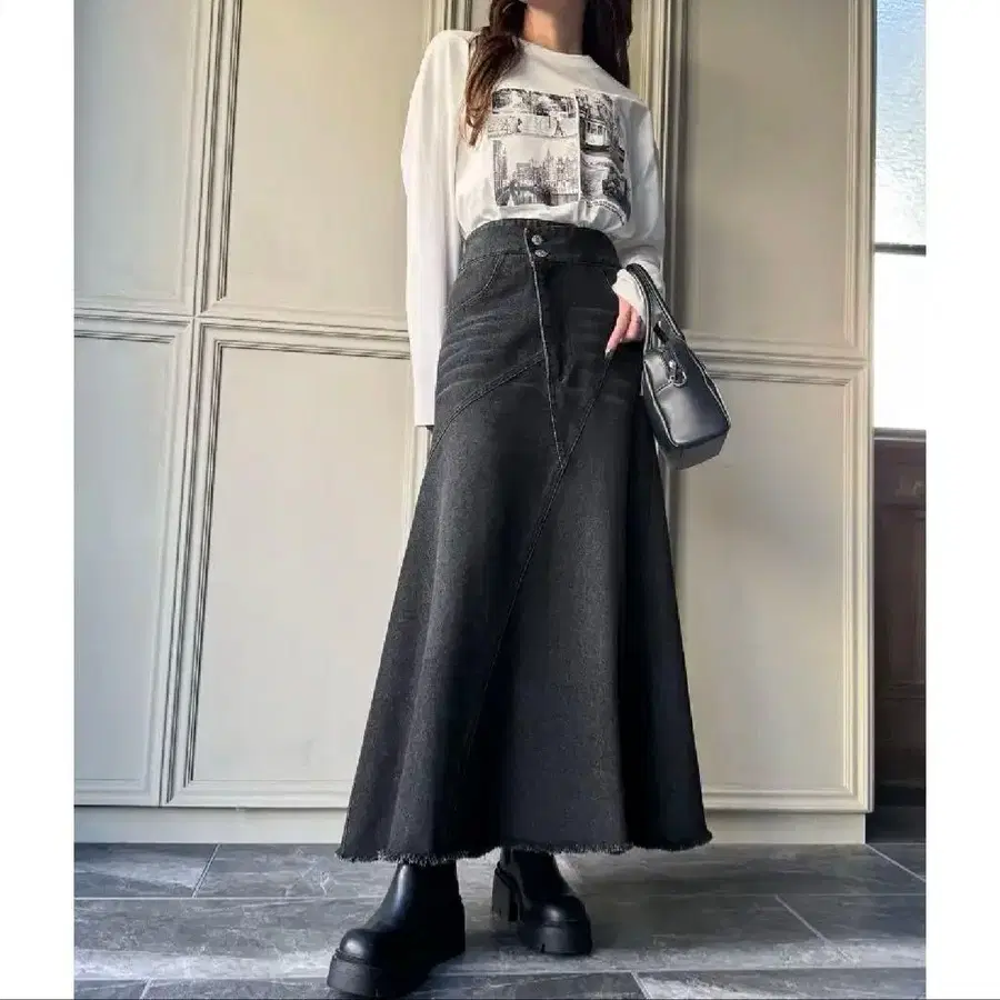 JUNOAH 아지메 디자인 데님 머메이드 스커트