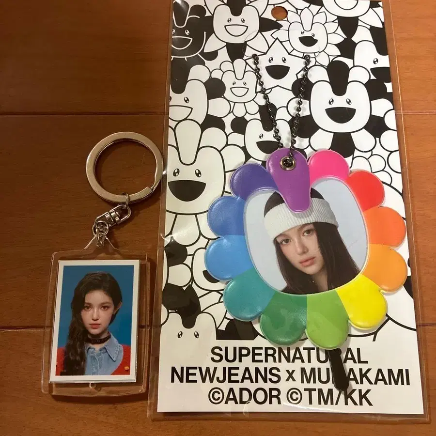 NEWJEANS x MURAKAMI 부채 키링과 증명 사진 키링 세트입니다. 가격 인하, 낱개 판매 ❌ 공식 제품 그룹명 - NewJeans 멤버명 - 다니엘