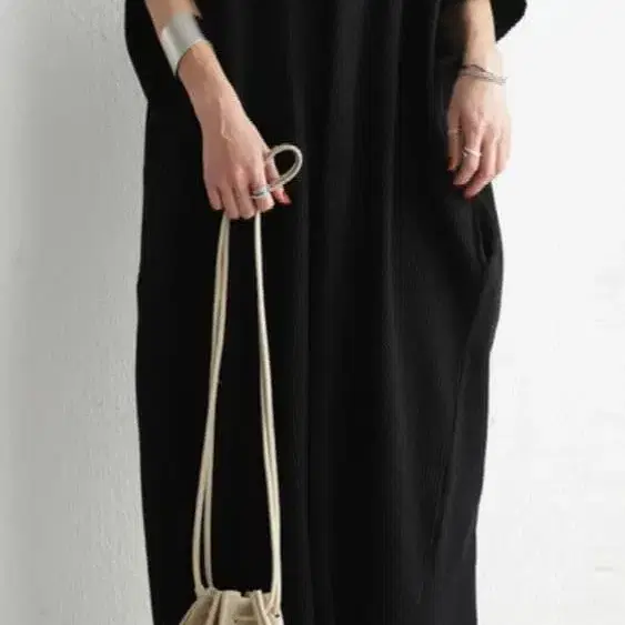 [새상품급] DouDou 허리 드로스트 롱 원피스 블랙