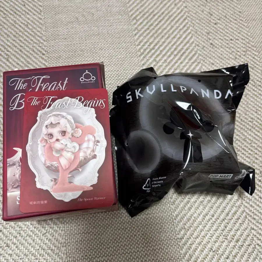 POPMART SKULLPANDA The Feast Begins 시리즈 피규어 내용물 확인을 위해 개봉했지만, 중간 봉투는 미개봉입니다. 에어캡으로 감싸고, 외부 박스는 접어서 동봉하겠습니다. 카드는 골판지 보강을 하지 않습니다.