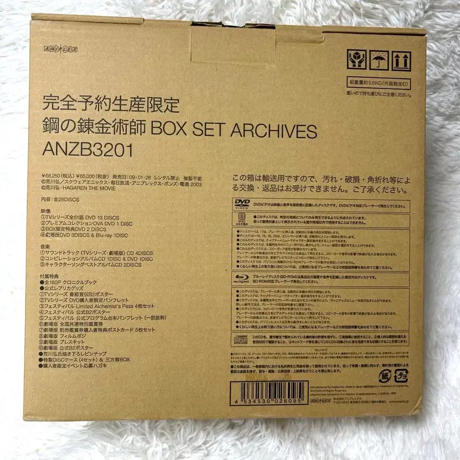 완전 예약 생산 한정판 강철의 연금술사 DVD 박스 세트. 정가 68000엔 - 상품명: 강철의 연금술사 BOX SET ARCHIVES ANZB3201 - 상태: 완전 예약 생산 한정판 - 미디어 타입: DVD 방문해 주셔서 감사합니다. 노클레임/노리턴 부탁드립니다.
