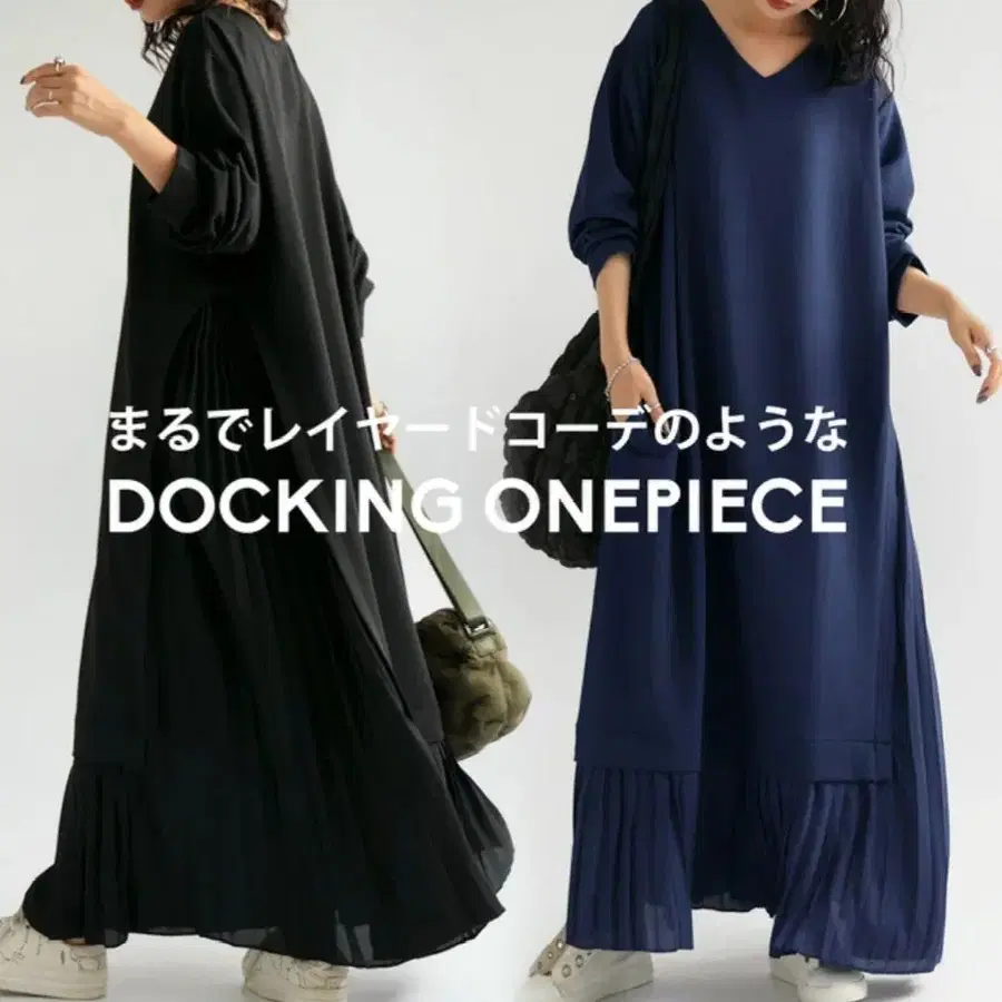 rienda 배색 니트 x 플리츠 롱 원피스 F