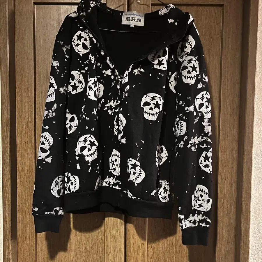 Y2K Roen hyde 착용 스컬 패턴 귀 달린 후드티