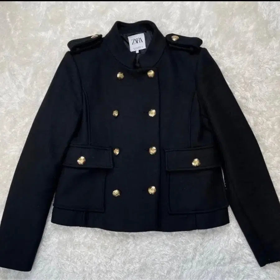 포켓 있음, 골드 버튼, 어깨 패드 내장, 안감 부착.