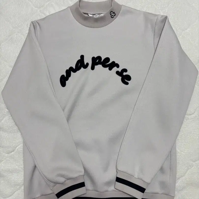 로고 자수가 특징인 라이트 그레이 맨투맨.