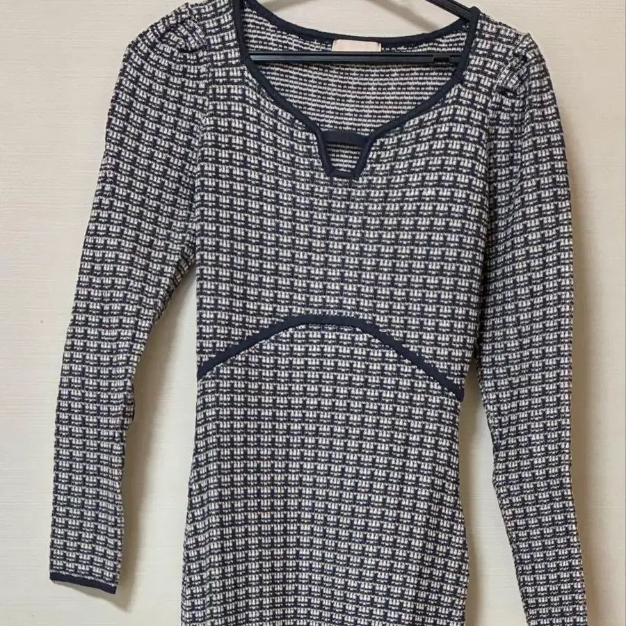 리젝시 리젝시 바이컬러 트위드 니트 원피스 - 색상: 블루 계열 - 디자인: 긴팔, V넥, 핏감 있는 실루엣 방문해 주셔서 감사합니다.