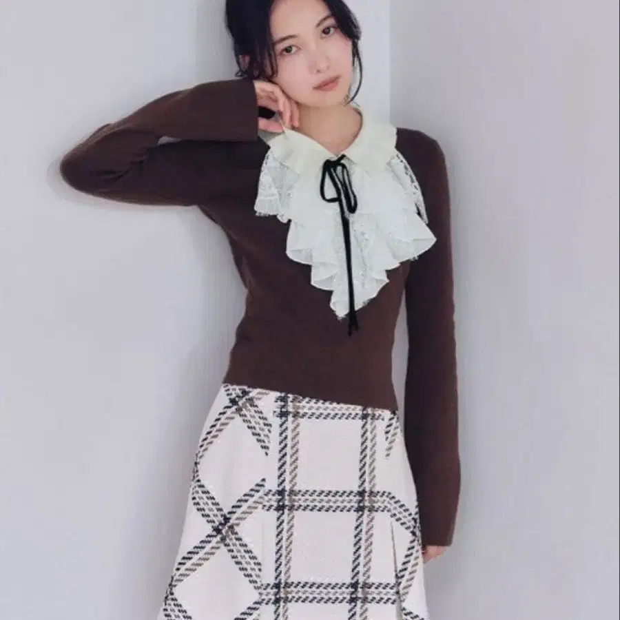 J&M DAVIDSON Johnstons 글렌체크 스커트 브라운 #8