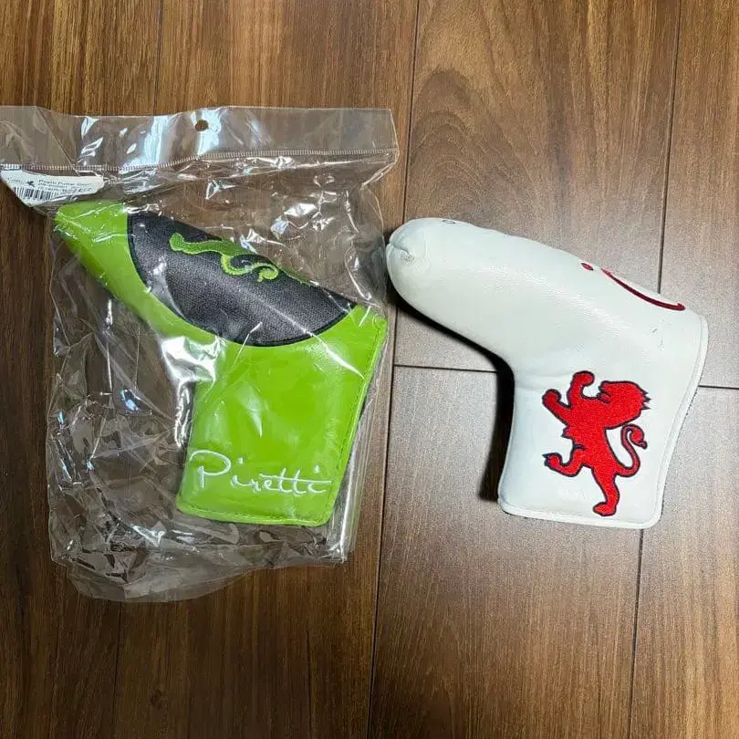 사자 자수가 놓인 Piretti 퍼터용 골프헤드커버. 세트로 판매합니다. 옐로우 그린 색상은 봉투가 찢어졌지만 미사용품입니다. - 브랜드: Piretti 방문해 주셔서 감사합니다.