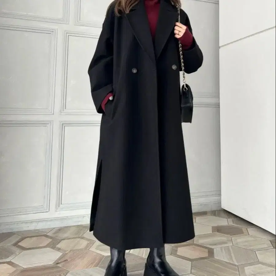 니트 멜톤 사이드 슬릿 롱 체스터 코트