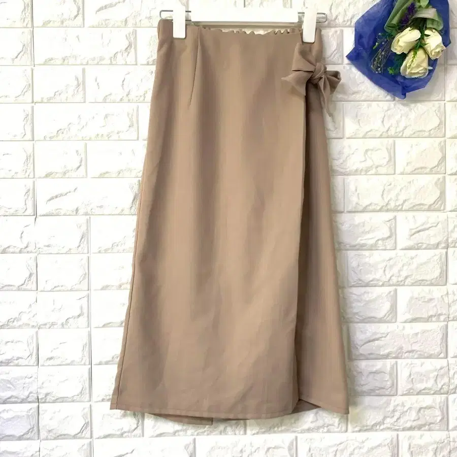 롱 스커트 사이드 리본 백 슬릿 뒷면 밴딩 롱 레그 슬림 오피스
