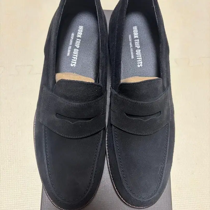 블랙 스웨이드 소재를 사용한 로퍼, 쾌적한 착용감과 스타일리시한 디자인이 특징입니다. 새상품 그대로 보관했습니다. 신을 기회가 없어 사용해주실 분께 양도합니다. - 브랜드: WORK TRIP OUTFITS - 색상: 블랙 - 사이즈: 8 - 밑창 소재: 러버 방문해 주셔서 감사합니다. 색상 - 블랙 계열 얼룩, 찢김, 냄새 등 - 없음 소재 - 천연 가죽