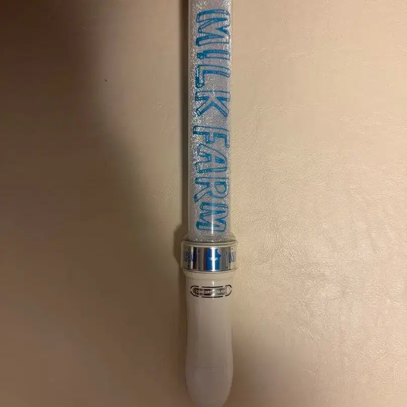 M!LK 응원봉 M!LK 목장으로 점등 확인 완료 몇 번 사용했으며, 몇 년 전의 것이라 손잡이에 색바램이 있습니다. 외부 가방, 배터리는 포함되지 않습니다.