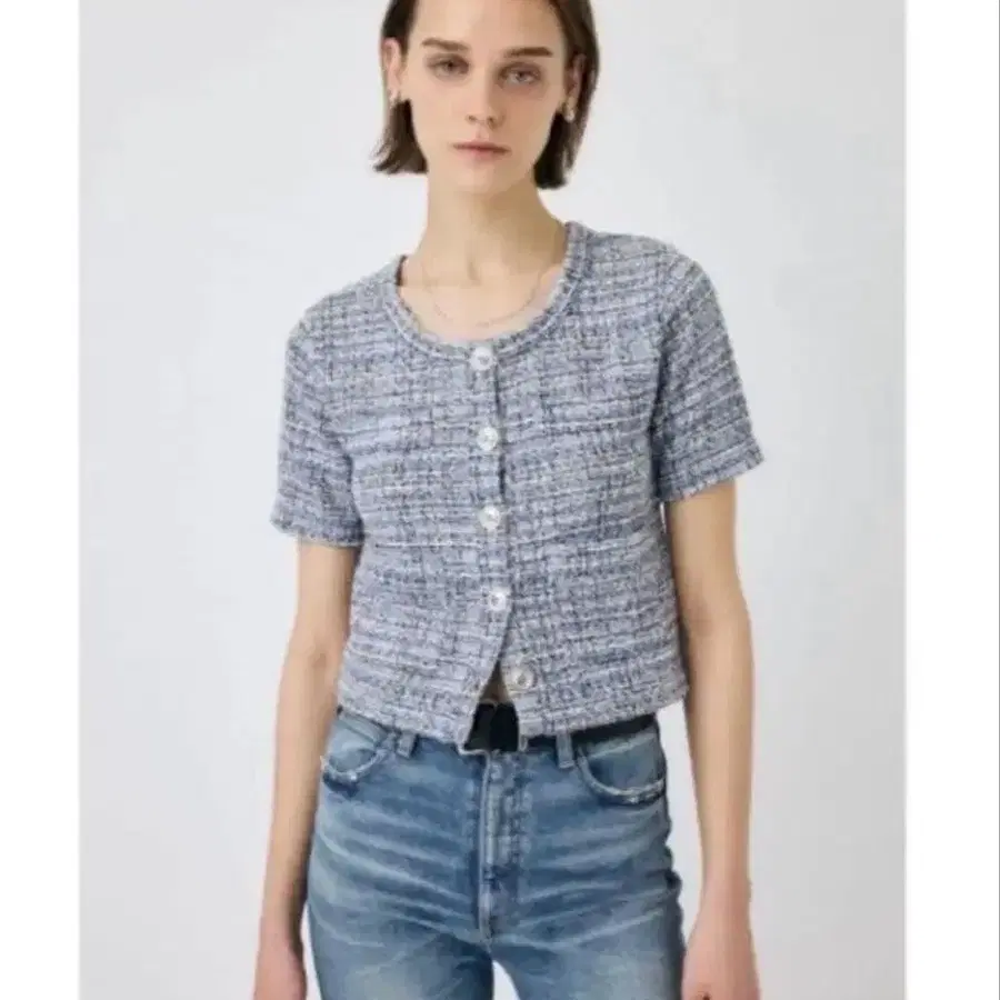 새상품급 TOMORROWLAND .B 믹스 트위드 하프 슬리브 탑