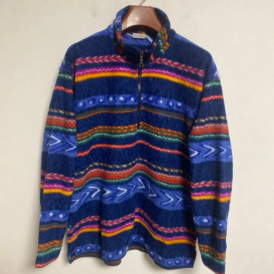 셀지오 타키니의 컬러풀한 스트라이프 무늬 플리스 스트레이너, 지퍼가 있어 따뜻합니다.