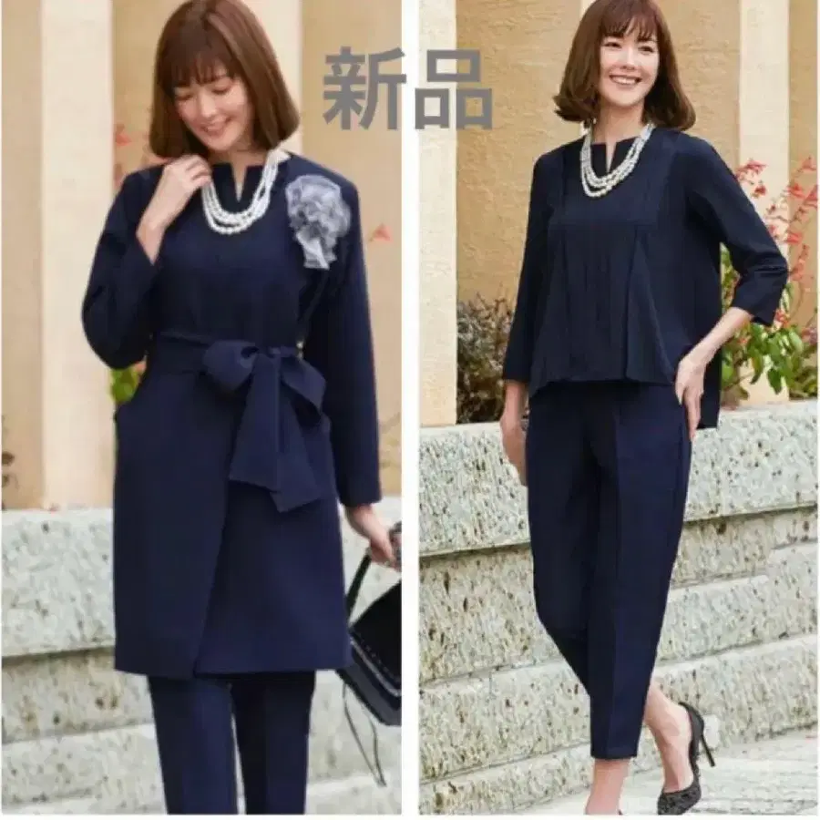 요즘 수트 네이비 XL 입학식 졸업식 엄마 수트 셋업 펄 목걸이 포함