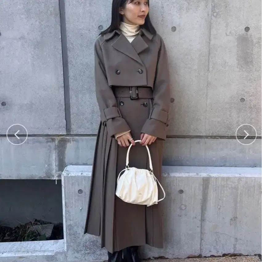 3가지 패턴으로 착용이 가능한 트렌치 스타일의 울 코트입니다. 숏 기장의 코트와 안쪽의 롱 베스트가 세퍼레이트 되어 있어, 함께 착용하거나 각각 따로 착용할 수 있습니다.