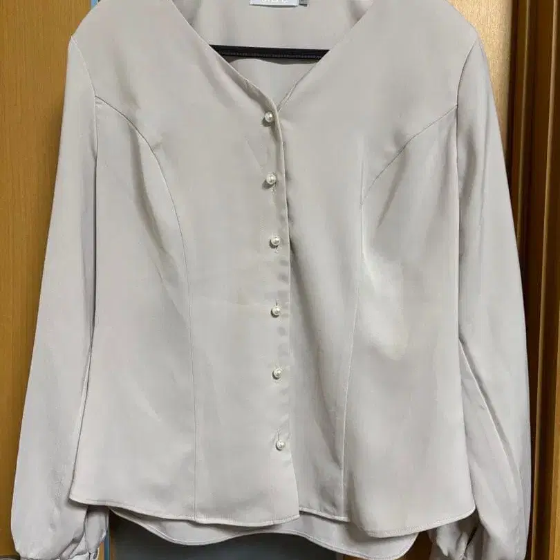 overE 오버이 라이트 그레이 긴팔 V넥 펄 버튼 블라우스 90