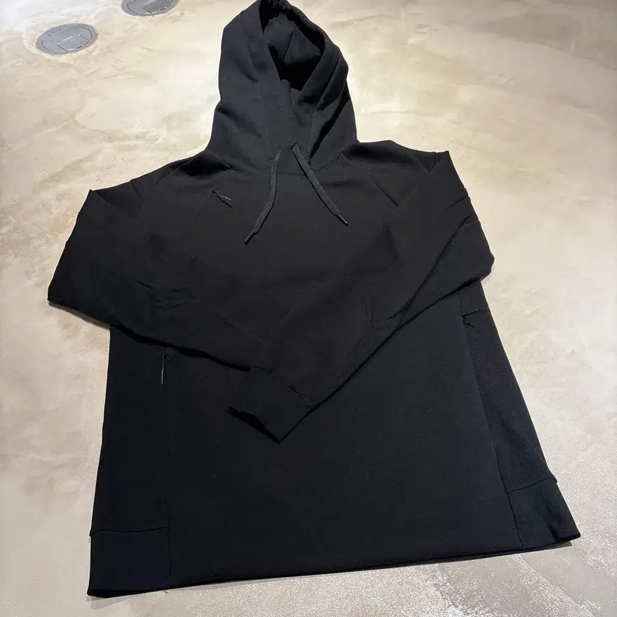 블랙 후드티, 경량으로 쾌적한 착용감. - 브랜드: White Mountaineering - 사이즈: 0 - 소재: 폴리에스테르 85%, 코튼 15% - 색상: 블랙 - 스타일: 후드 부착 방문해 주셔서 감사합니다. 블랙 색상이 바래지 않아 새상품급이라고 생각합니다. 사이즈 - M