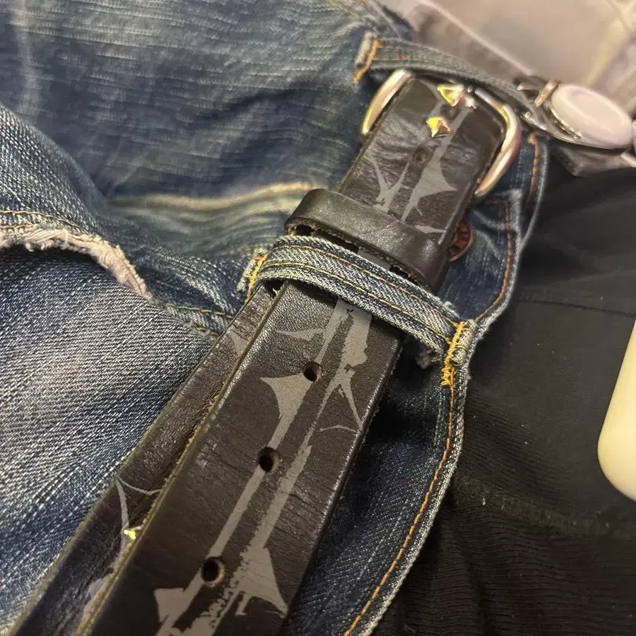 1과 1 스터드 장식 그래픽 가죽 벨트