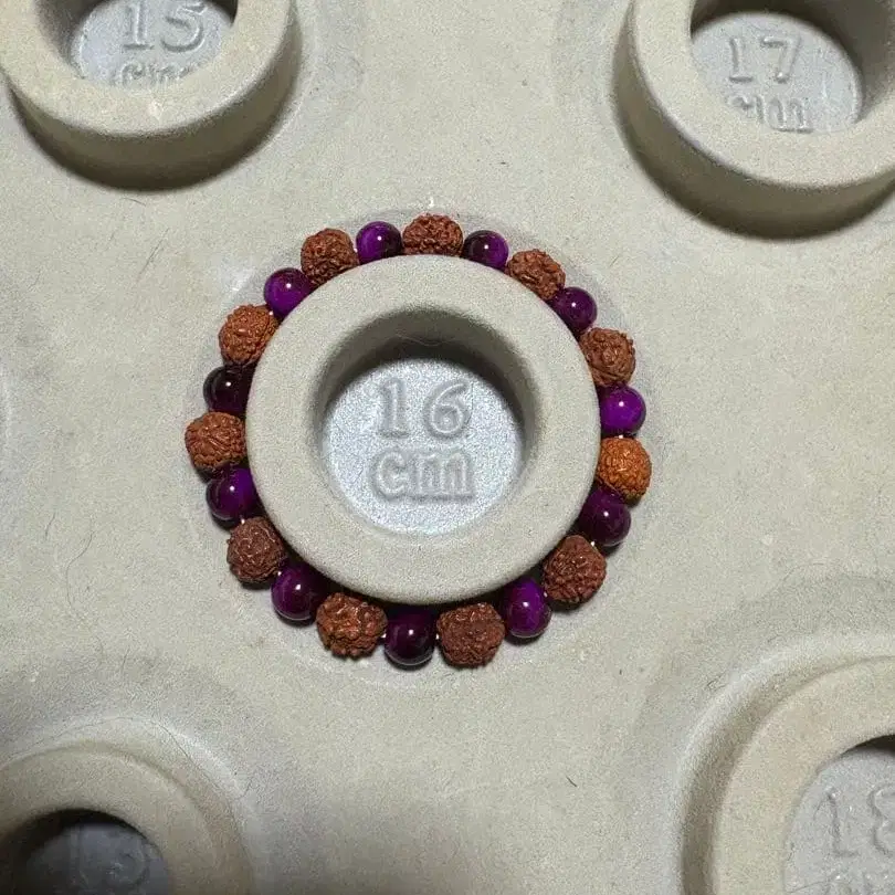 루드라크샤 보리수와 퍼플 타이거 팔찌 16cm