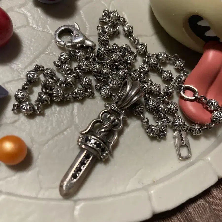 실버 대거 펜던트와 크로스볼 체인 목걸이. 정품 부속물 없습니다. 새상품급이지만 일부러 닦지 않았습니다. - 소재: 실버 - 디자인: 검 펜던트 - 체인 타입: 크로스볼 체인 - 클로징 타입: 카니칸 - 장식: 스톤 포함 방문해 주셔서 감사합니다.