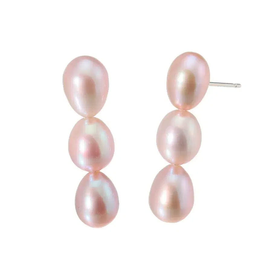 진주 3개로 이루어진 디자인으로, 엘레강트한 인상을 주는 귀걸이입니다. - 색상: 핑크 - 소재: 진주 - 디자인: 3개 연결 디자인 - 장착 이미지: 귀에 장착한 이미지 방문해 주셔서 감사합니다.
