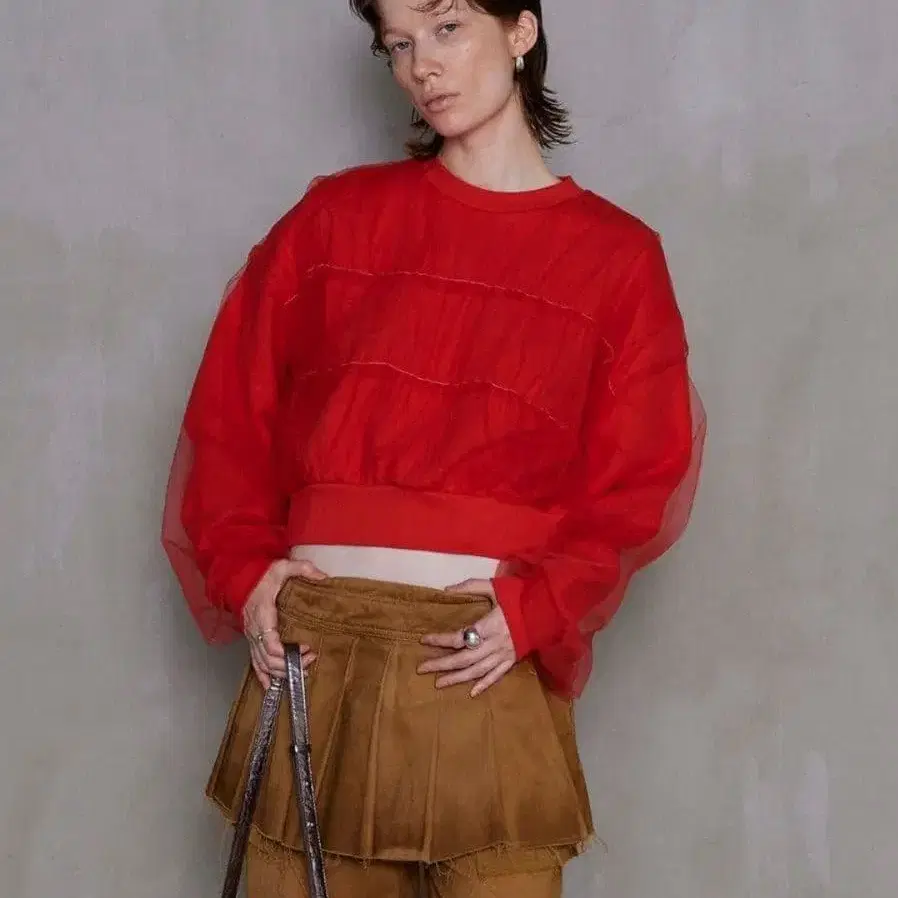 MAISON SPECIAL 튤 레이어드 맨투맨
