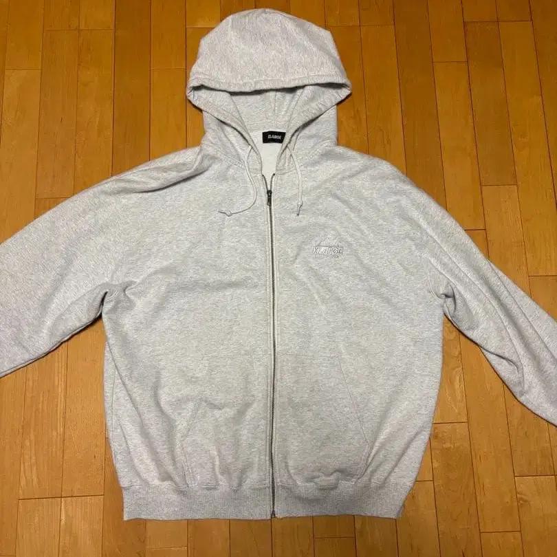 자동 번역되었어요. 원문보기그레이 XLARGE 지퍼 후드티, 자수 로고 포함.