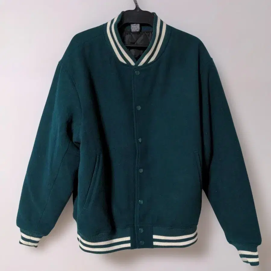 안녕하세요 멜톤 원단의 바시티 자켓입니다. 당구 그린 따뜻합니다. 어깨 너비 / 가슴 너비 / 소매 길이 / 기장 어깨 너비 - 56cm 가슴 너비 - 62cm 소매 길이 - 64cm 기장 - 68cm 컬러 - 그린 계열 얼룩, 찢김, 냄새 등 - 없음