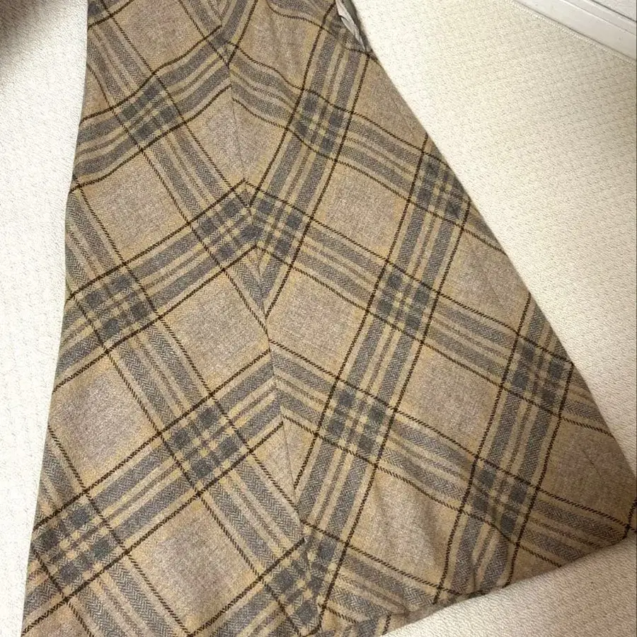 언타이틀 체크 무늬 플레어 스커트 A라인 고급 울 혼방 월드