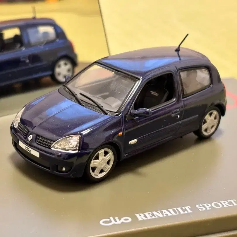 Clio Renault Sport 2.0 16V 미니카 케이스에 약간의 흐림이 있지만 본체는 깨끗한 상태입니다.