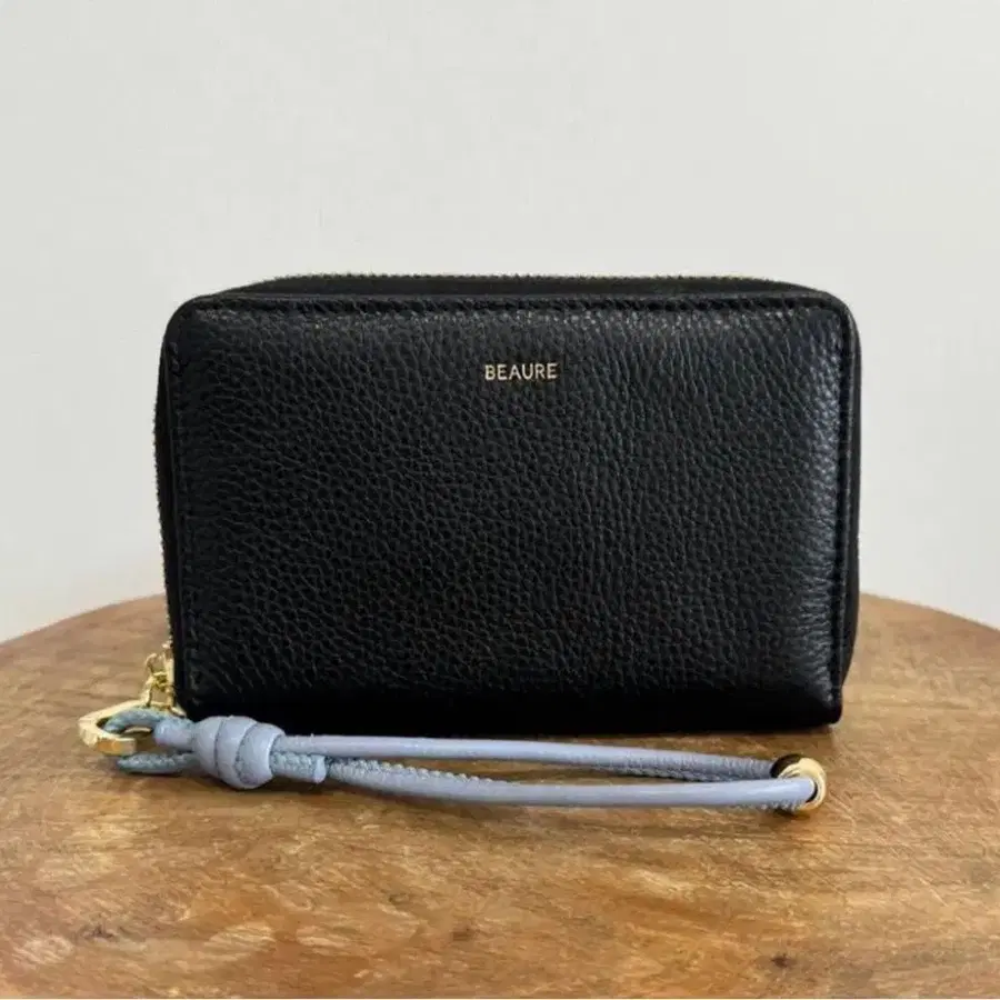 뷰레 카우 가죽 핸드 스트랩 포함 바이컬러 라운드 B7 지갑 블랙
