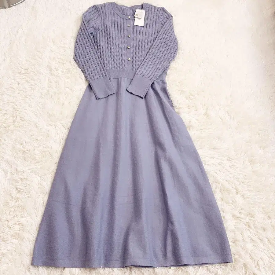 연보라색 긴팔 니트 원피스 버튼 포함 V is 사이즈 S 택 포함 새상품