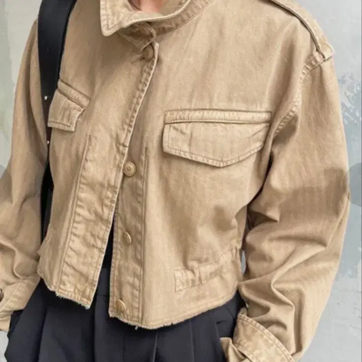 데님 소재의 베이지 크롭 자켓, 프론트 포켓이 있어 스타일리시합니다. - 색상: 베이지 - 스타일: 크롭 자켓 - 포켓: 프론트 포켓 부착 - 디자인: 단추식, 스탠드 카라 - 소재: 데님 소재 사진 123은 베이지 색상이지만, 판매하는 상품은 카키색입니다. 방문해 주셔서 감사합니다.