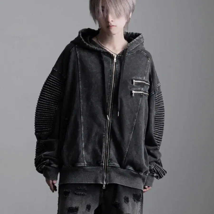 UNDERGROUND 절개 바이커 ZIP 후드티 블랙