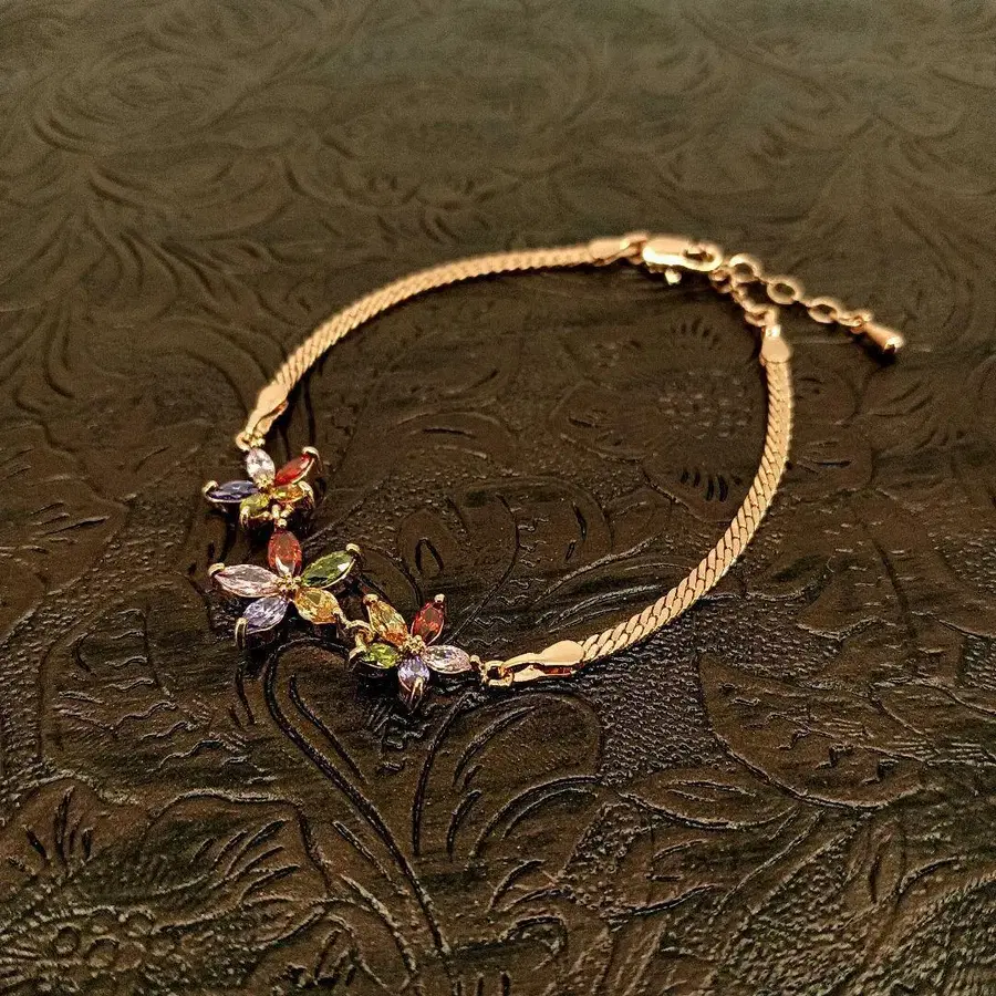 빈티지 플라워 로즈 골드 팔찌 지르코니아