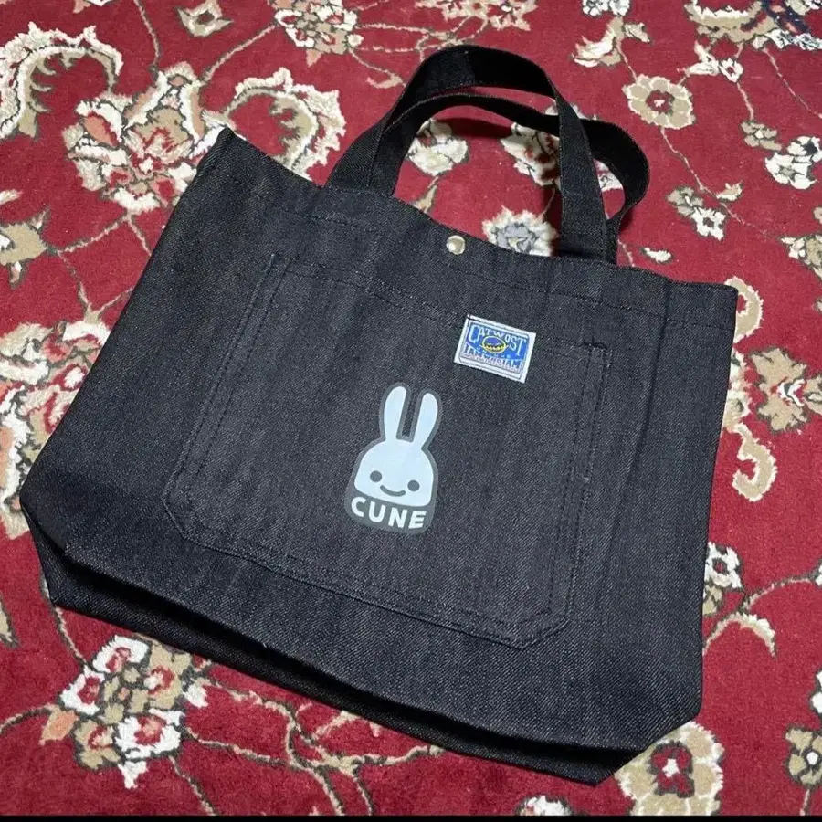 토끼 로고가 특징인 다크 데님 토트백. - 색상: 다크 데님 - 디자인: 토끼 로고 포함 - 소재: 데님 - 스타일: 토트백 - 사이즈: 중간 세로: 약 26.5cm 가로: 약 31.5cm 바닥: 약 8.5cm 포켓은 앞면에 1개만 있습니다. 인터넷으로 구매했지만 정품인지는 모르겠습니다. 얇은 원단입니다. 마음에 드시면 사용해 주세요. ※ 반품 및 환불은 접수하지 않으니 양해 부탁드립니다. #CUNE #토트백 #에코백 #백