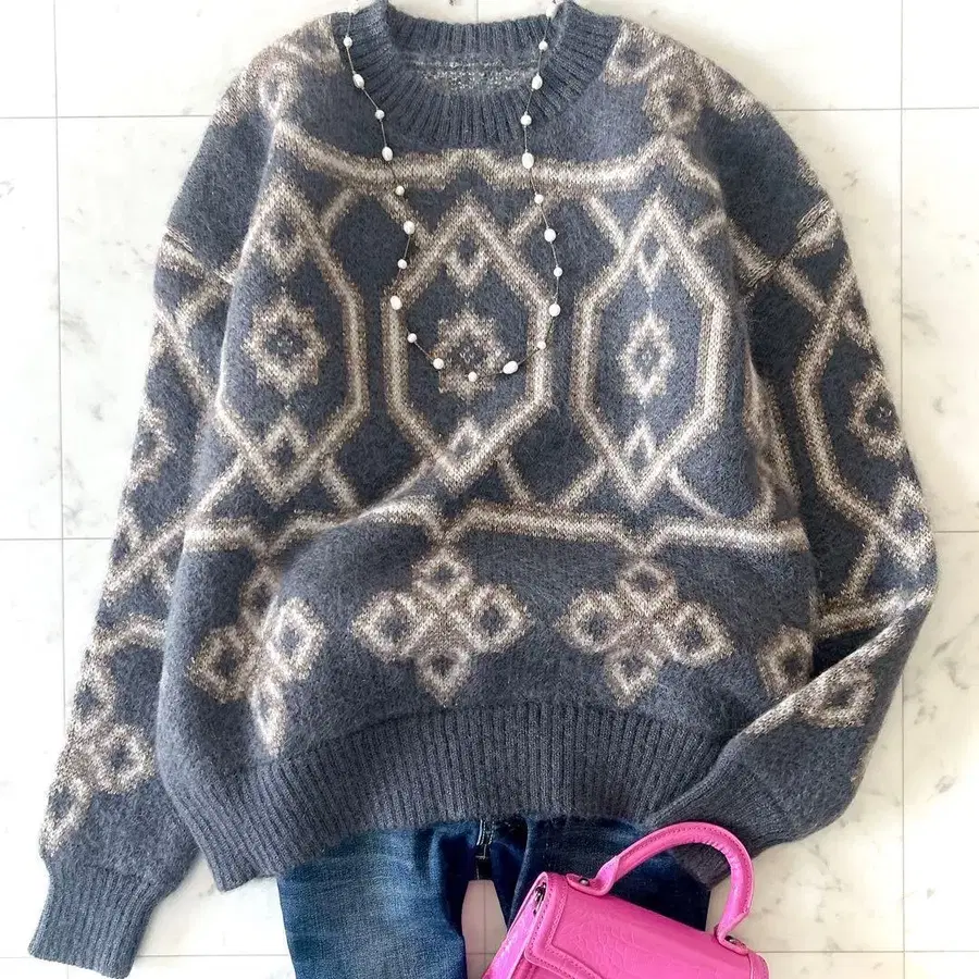 모헤어 아가일 니트 새상품