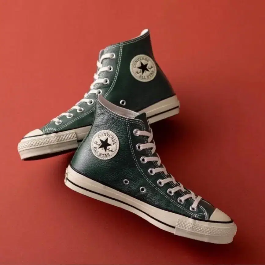가격 인하 불가입니다. 컨버스 레더 올스타 J 하이 딥 그린 일본제 미사용 새상품입니다. 색상 딥 그린 정가 30,800엔 사이즈 26.5cm 올스타의 MADE IN JAPAN 모델. 어퍼에 주름이 있는 고급 일본산 가죽을 채용.
