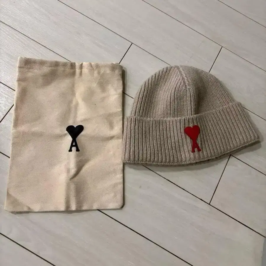 베이지 니트 모자, 하트와 A 자수 포함. - 색상: 베이지 - 디자인: 하트와 A 자수 - 부속품: 헝겊 가방 방문해 주셔서 감사합니다. 색상 - 베이지 계열 얼룩, 찢김, 냄새 등 - 없음