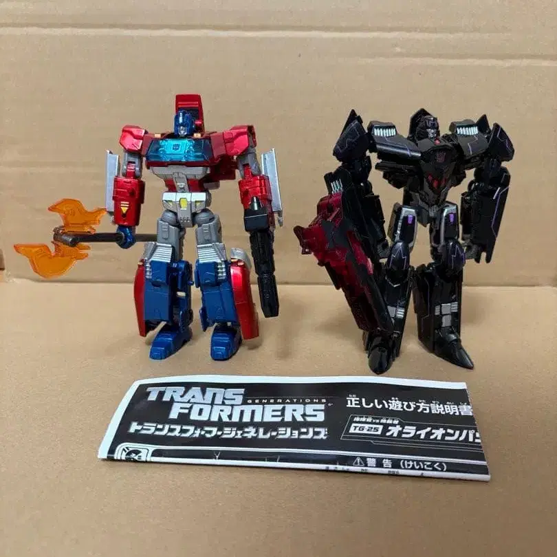 상자는 없지만, 부품류와 설명서는 모두 갖추어져 있습니다. 약간의 마찰 등은 양해 부탁드립니다. 메가트론의 오른쪽 어깨 축이 느슨합니다.