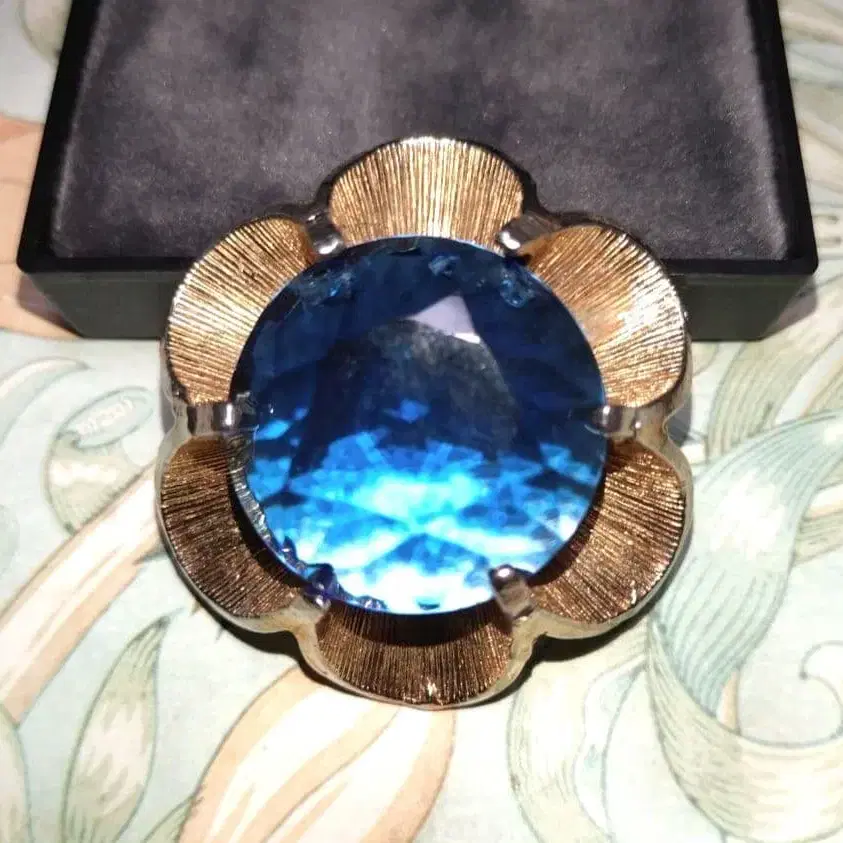 블루 유리 플라워 빈티지 브로치 골드